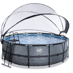 EXIT TOYS EXIT Frame Pool ø427x122cm (12v Sand Filter) – Grijs + Zonnedak + Warmtepomp