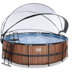 EXIT TOYS EXIT Frame Pool ø427x122cm (12v Sand Filter) – Houtoptiek + Zonnedak + Warmtepom